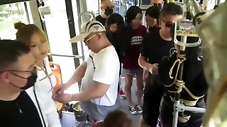 Two kinky latinas demonstrating their pussies on a public bus and seducing a guy for a three-way in a taxi