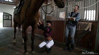 Dame's mouth fucked rock-hard before a guy plows her vagina