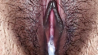 Promiscuous wife Milky Mari showing to you her labia running in rivulets with a huge BBC creampie after breeding session!