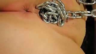 Wacky ex girlfriend Sally opened up her pussy with chains