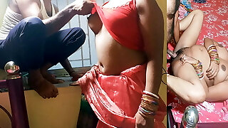 Super-fucking-hot maid wear Saree in front of her malik and deep-throats Salami and hard ASS FUCK in hindi audio