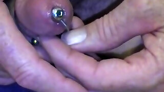 And here is my horny sow with her fat globes, pierced with a whole bunch of needles.