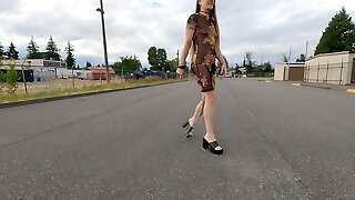 Longpussy, Dragging over a Kilogram (Two.Trio lbs) of chain off my Vag in a Sheer Dress out for a Walk.