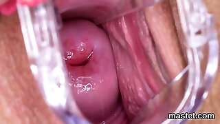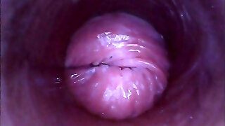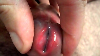 Slow-mo. Extremely close-up. Completed in between her twat lips