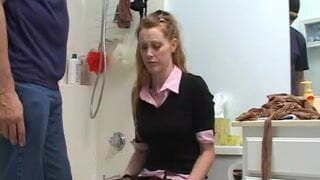 Dude with a big bone fucks face of leggy trussed up bitch Mona Wales