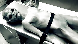 The doctor cheers up the dark haired nurse with fake boobs by thrusting her with his big stiffy