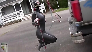subjugated Goddess Kyaa gagged in bondage, Into the Attic