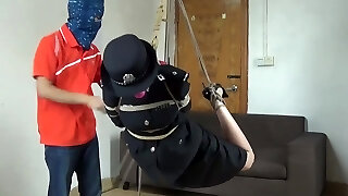Chinese schoolgirl tied up with stockings