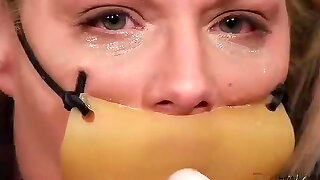 Aged slut gets titillated whilst being strapped cock-squeezing